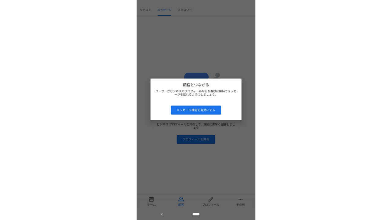 ちょっとややこしいのは、「Google マイビジネス」を利用しているだけでなく、“メッセージ” 機能自体を ON にしているスポットアカウントでないと、“メッセージ” が表示されないという点です。