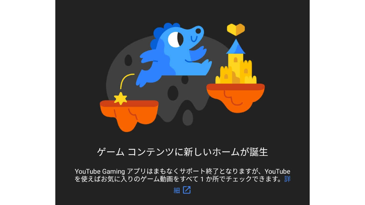 Google は、昨年末に 2019 年 3 月末でサポート終了予定を発表していた、ゲーム配信動画特化サービス「YouTube Gaming」の Android、iOS 版アプリを、5 月 30 日をもって終了することを明らかにしました。