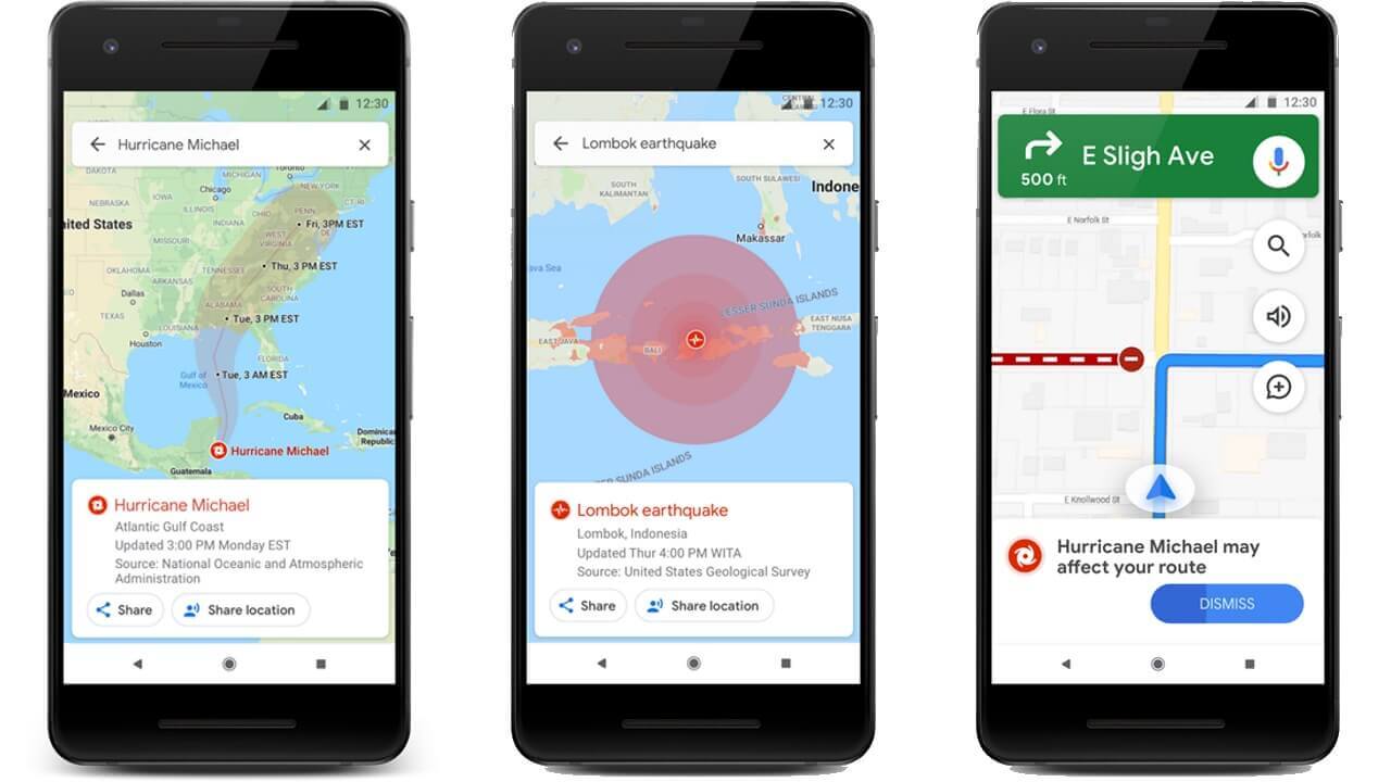 Google これまでも災害情報を「Google 検索」のトップに災害カードとして表示したりなどをしてきましたが、新たに台風と地震、そして洪水(インドのみ)情報を、「Google マップ」上に表示する新機能を提供します。