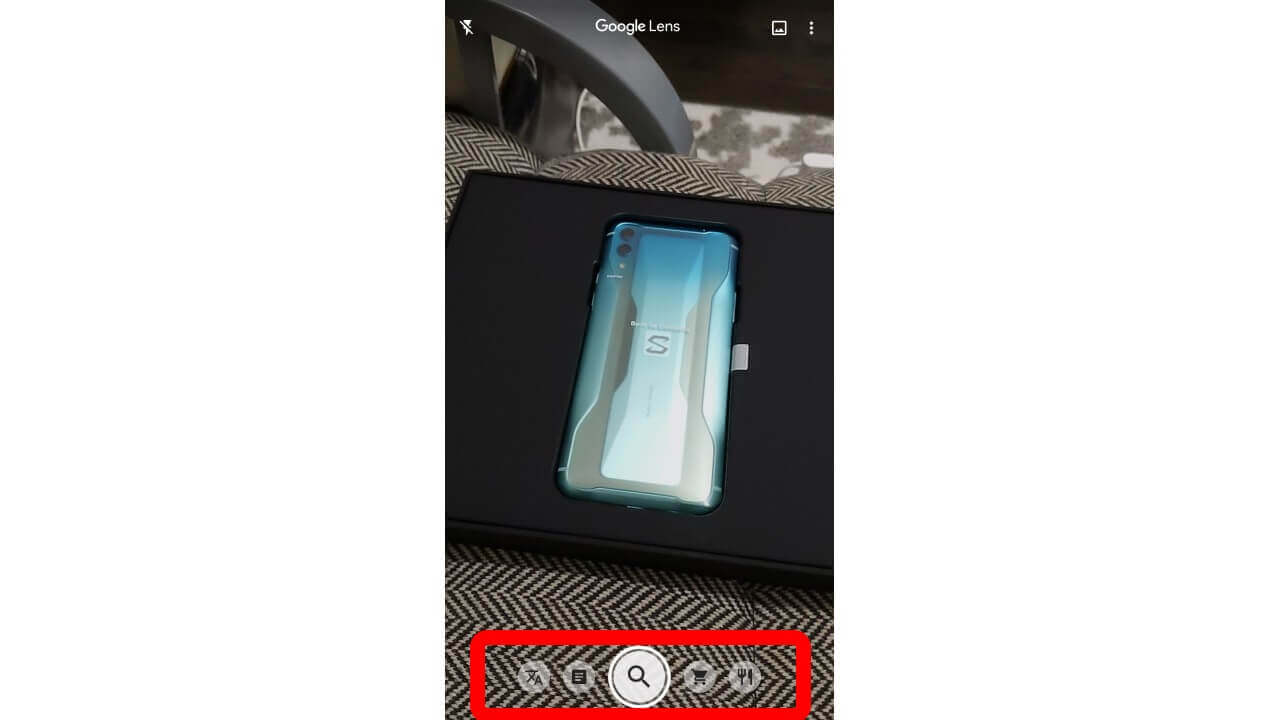 これまでの「Google レンズ」はカメラを向けると自動で被写体を読み取る仕様でしたが、新 UI では読み取りモードを切り替えて利用する仕様です。モードは、左から “翻訳” “文字” “検索” “ショッピング” “食事” の順で並んでいます。