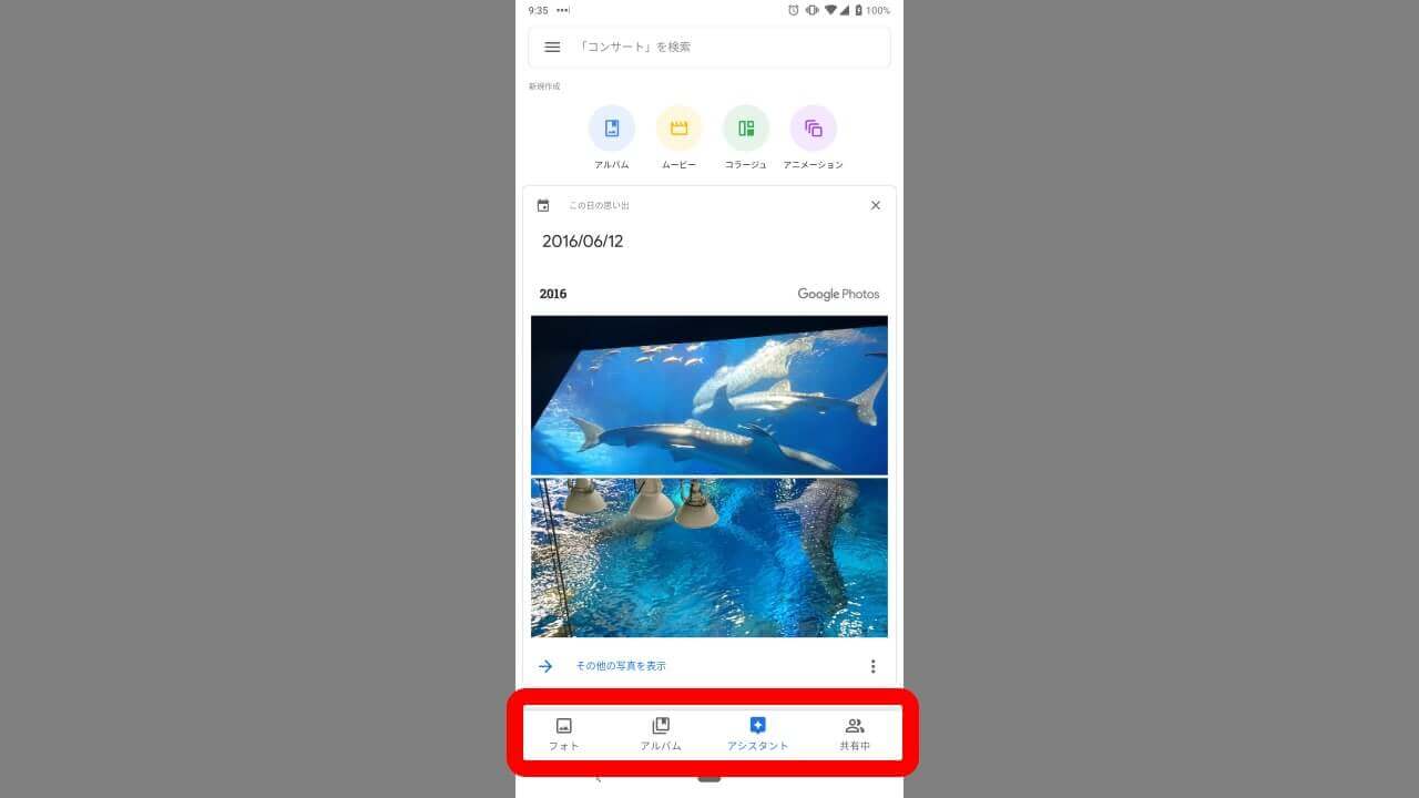 「Google フォト」のタブは、“フォト” “アルバム” “アシスタント” “共有” の 4 つが並んでいます。今回このタブを切り替えた際に表示されるメディアが、より素早く表示されるようになったわけで、よりスムーズに操作を行うことが可能となりました。