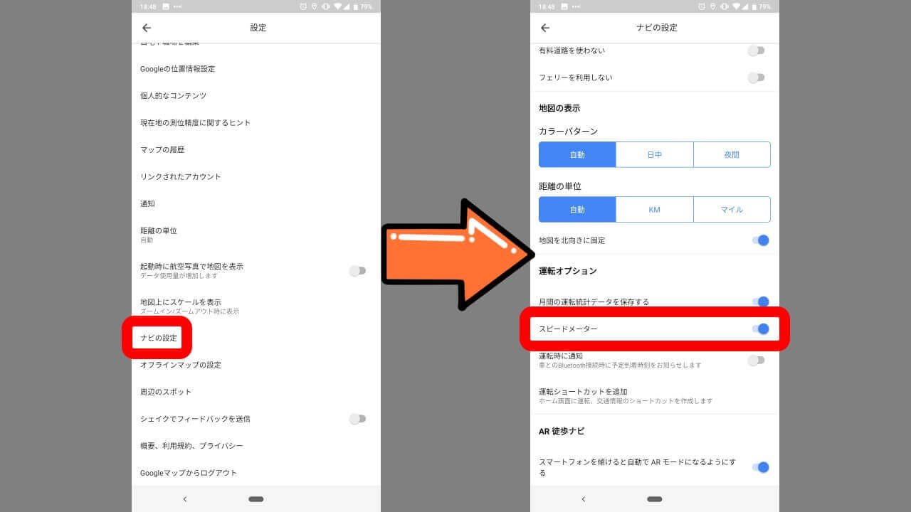 「Google マップ」カーナビ中スピードーメーター追加