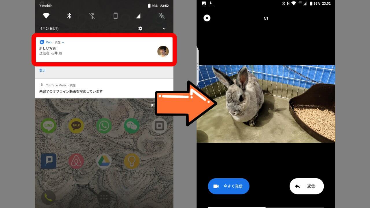 ただし、今のところ “返信” をタッチしても通常の「Google Duo」が起動するのみ。恐らくまだこの画像共有機能が完成形ではないため、機能がまだ完全ではないと予想されます。