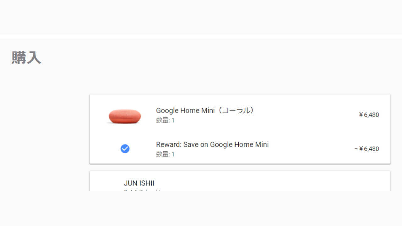 他の何かを、同時に購入する必要などはありません。Google ストアで「Google Home Mini」をカートに入れて決済を行う際にプロモーションコードを入力すれば、完全無料で「Google Home Mini」が送られてきます。