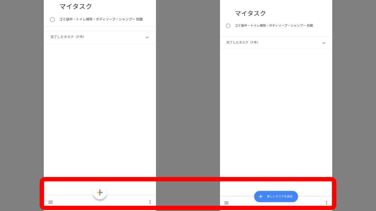 Android 版「ToDo リスト」アプリでちょっと刷新された部分は、“新しいタスクを追加” ボタンです。v1.6 では、新しいマテリアルデザインでは恒例となっているカラフルな “+” ボタンに変更されました。
