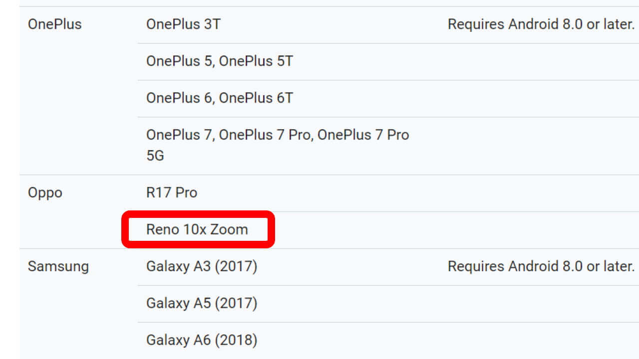 今回のアップデートでは周囲の光を推定し、そこから正確な影の陰影や光の反射などを表現する性能アップデートが行われていますが、追加機能などは特にありません。そんな中、先日国内投入が発表された OPPO のハイスペックスマートフォン「Reno 10x Zoom」が、「ARcore」サポート機種として追加されていました。