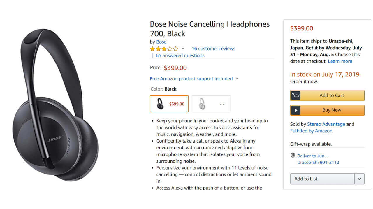 米国のオーディオメーカー Bose が 2019 年 6 月 30 日に現地で発売した、「Google アシスタント」ビルトインオーバーイヤーヘッドセット「QuietComfort 35 II(QC 35 II)」の後継モデルとなる「Bose Noise Cancelling Headphones 700」が、米国の Amazon.com から直輸入可能となりました。