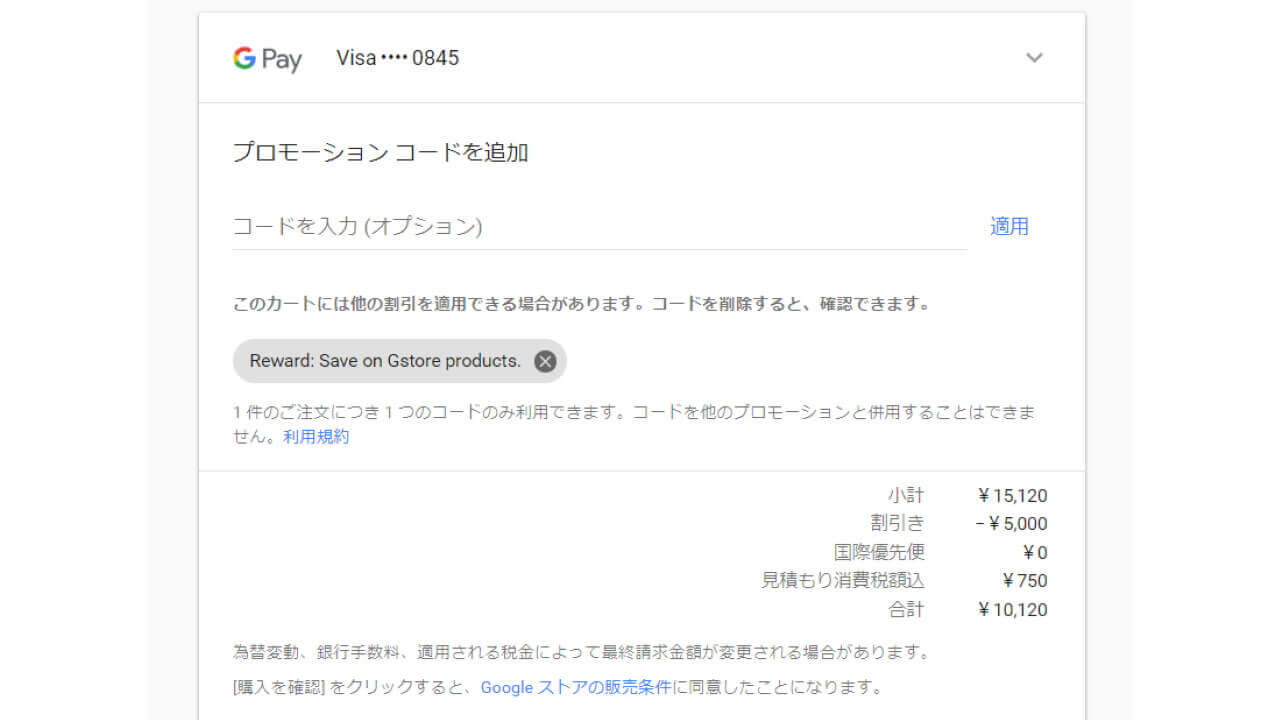 つまり今それらの商品にプロモーションコードを使用してしまうと味損します。特に「Pixel 3」「Pixel 3 XL」はまったく意味がないのでご注意ください。