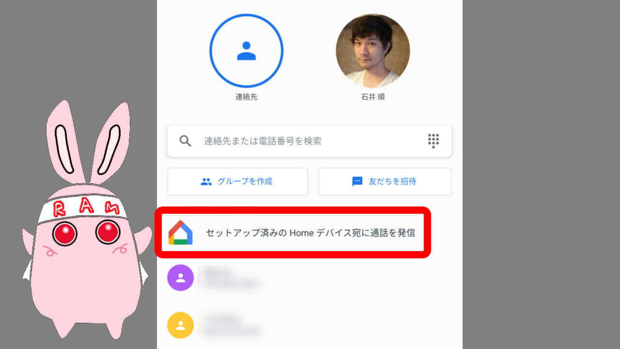 自分のGoogle スマートディスプレイとは、「Google Home」アプリにて、登録済み Google スマートディスプレイの「Google Duo」通話を許可しているデバイスを指します。つまり、自分の Google アカウントを登録している、セットアップ済みの Google スマートディスプレイです。
