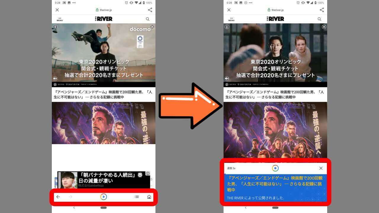 音声読み上げは早送りや巻き戻しのほか、1 / 2 / 3 倍速の 3 段階の読み上げ速度変更が可能。3 倍速にして、パパッとコンテンツの内容を音声で確認することができます。