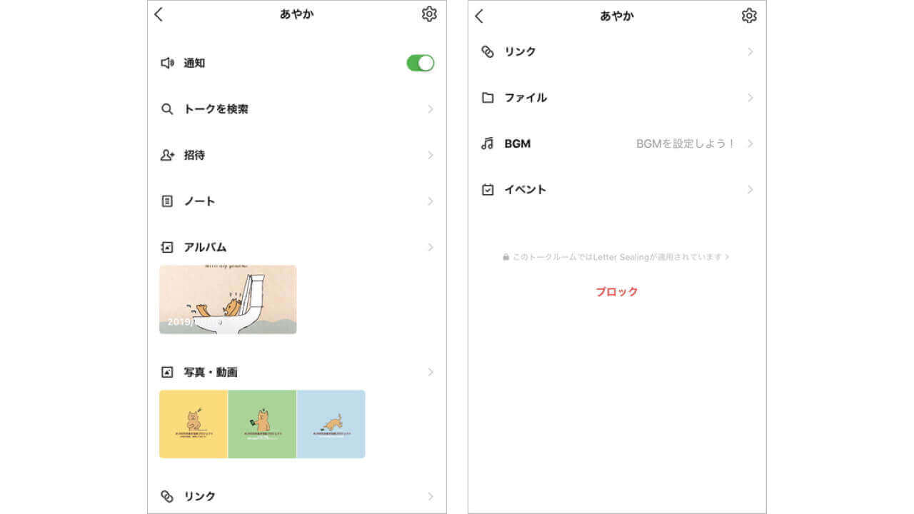 そしてトークメニューの表示は、これまでの上部引き出し型からフルスクリーン化。“アルバム” と “写真・動画” メニューについては、最新の画像か動画がプレビュー表示されます。