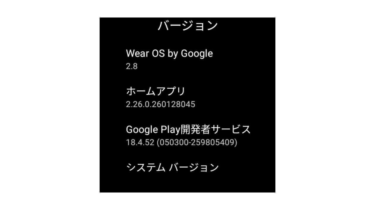 また Wear OS バージョンとシステム バージョンの変更も特になく、Wear OS バージョンは v2.8 です。システム バージョンは機種によって異なります。