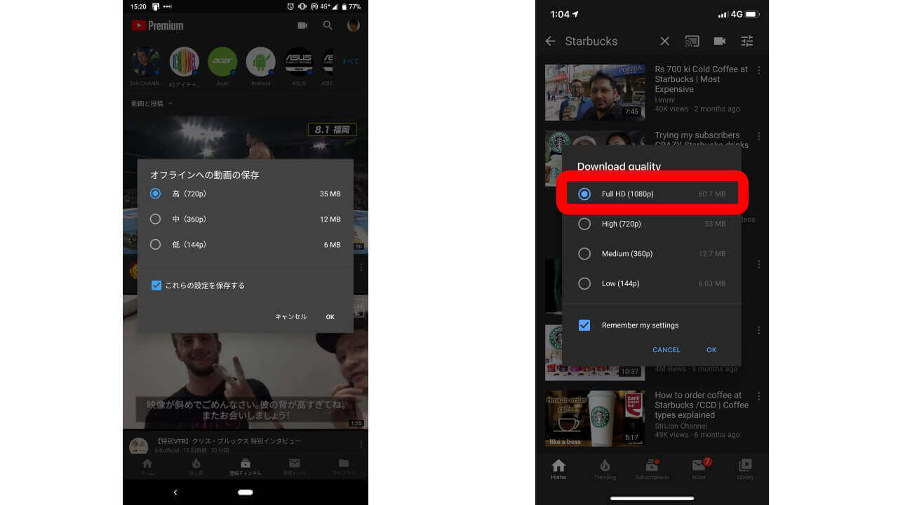 Wi-Fi 環境でダウンロードしておいて、機内など外出先で高画質オフライン再生を楽しむなんてこともできるようになります。もちろん、ダウンロードする動画が “フル HD” に対応していないとダメですけどね。