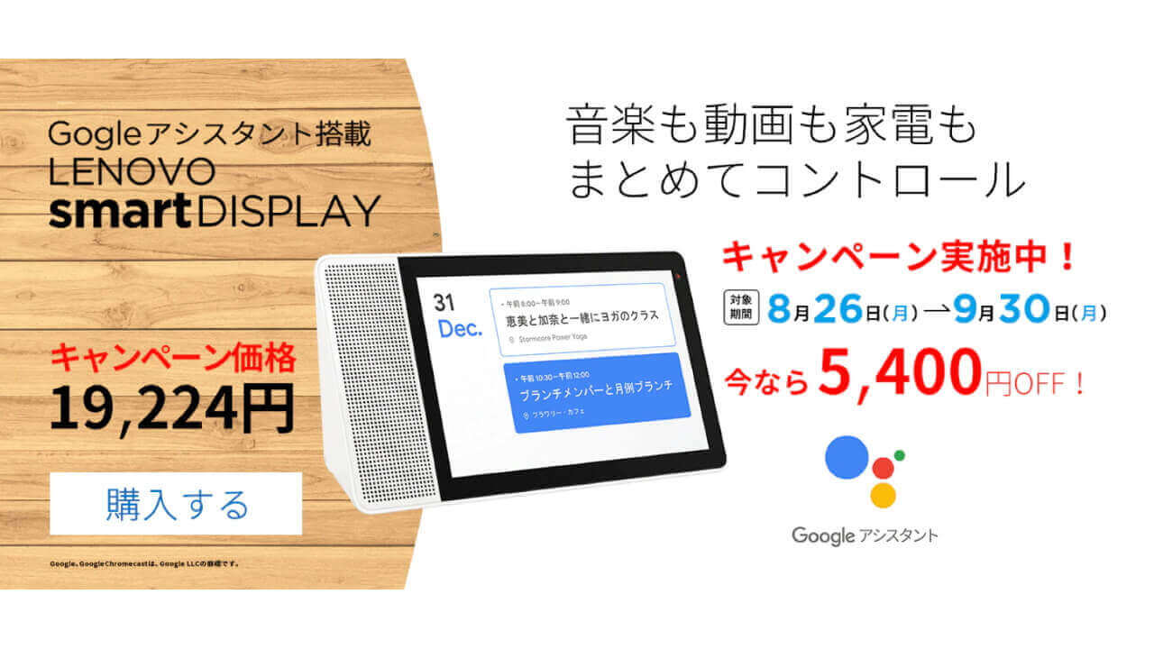 今回の「Lenovo Smart Display M10」と「Lenovo Smart Clock」の値下げは、9 月 30 日までの期間限定キャンペーン。約一か月のロングランキャンペーンです。