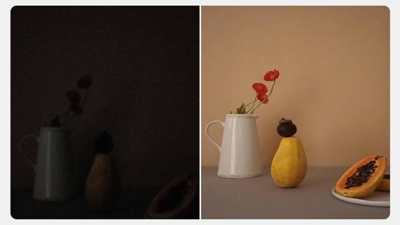 以下のサンプルの通り、真っ暗な場所でもかなり明るいカメラ撮影を行うことができます。