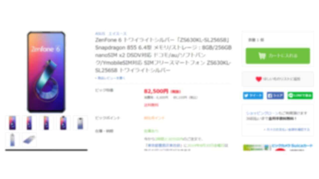 - 「ZenFone 6」6GB RAM + 128GB 内部ストレージ