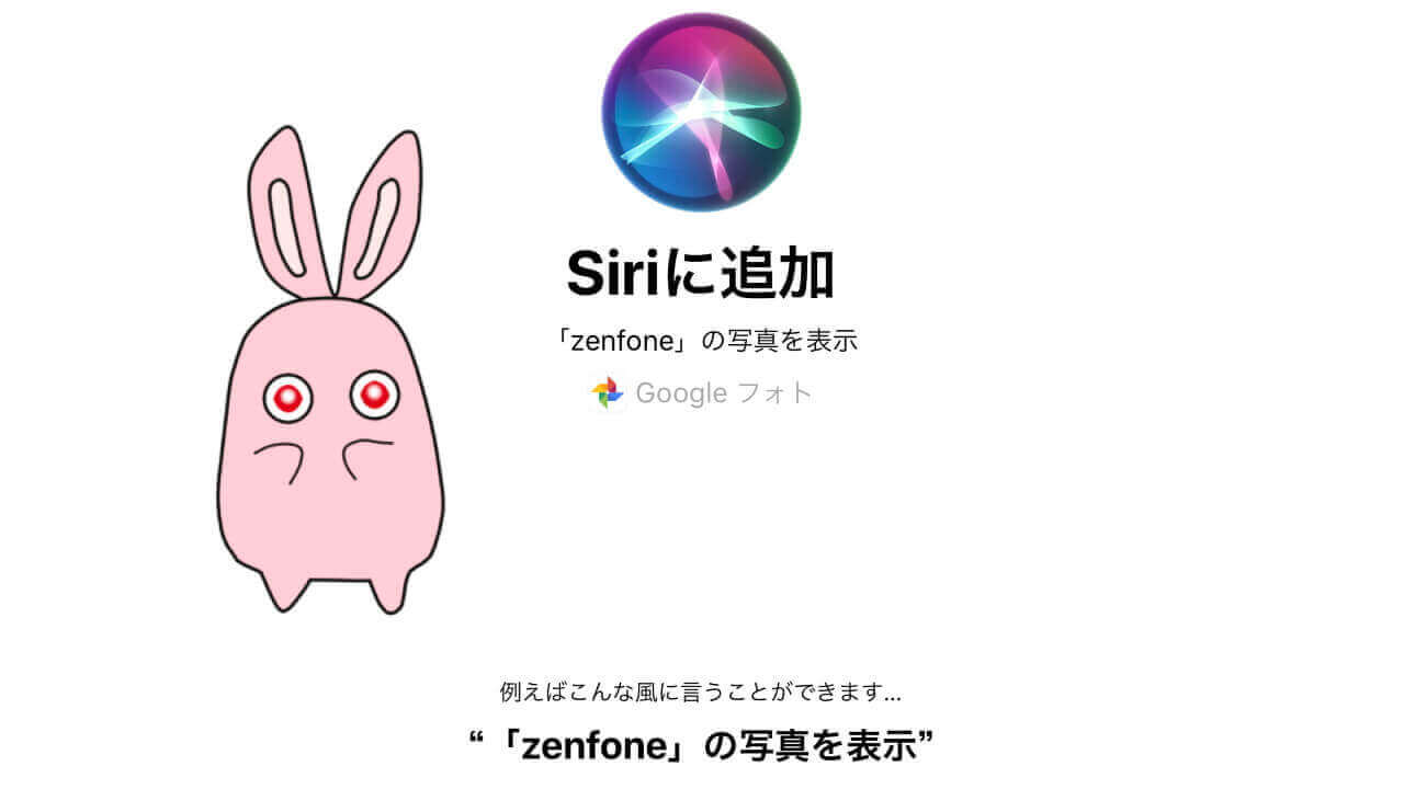 単純に「Google フォト」アプリ内で利用した検索キーワードを Siri ショートカットに登録することができるのですが、先日「Google フォト」が対応した画像内テキスト認識検索とも組み合わせることができるので、事前に検索するキーワードを Siri ショートカットに登録しておくことで、そのキーワードが写る画像が保存されたのちに Siri ショートカットを利用すると、そのキーワードが写る画像を表示することができるようになります。ややこしいですが、例えば “ZenFone” というキーワードで「Google フォト」内検索をしてから “ZenFone” を Siri ショートカットに登録することで、Siri かにて “ZenFone の写真を表示” というと、“ZenFone” が写る写真をダイレクトに表示でいるようになる、ということです。