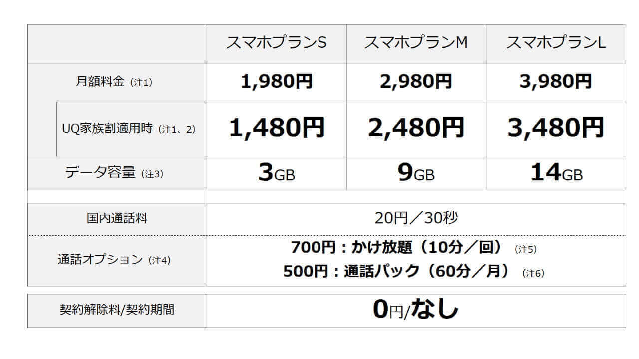 「スマホプラン(S / M / L)」は、これまで「おしゃべりプラン / ぴったりプラン」として提供されてきた「UQ mobile」の主要な料金プランから置き換わる、新しい料金プランです。