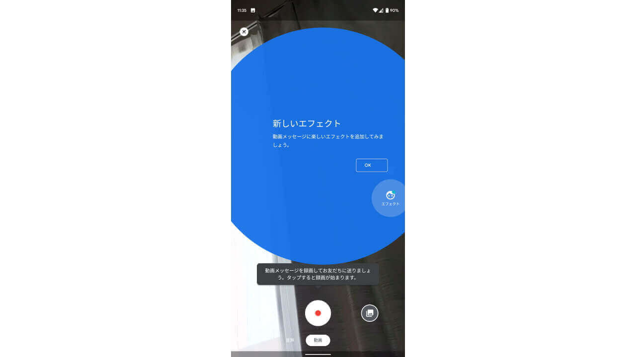 Android 版「Google Duo」の新しいエフェクト機能は、ビデオ通話時に利用できるわけではなく、“動画メッセージ” 作成時に利用できる機能です。