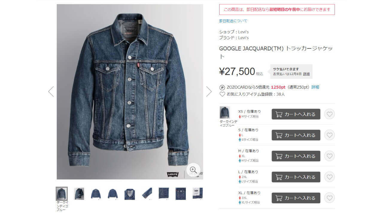 今はお金がないけど「Trucker Jacket」が欲しいという方は、ZOZOTOWN で “ツケ払い” を利用して購入することもできます。