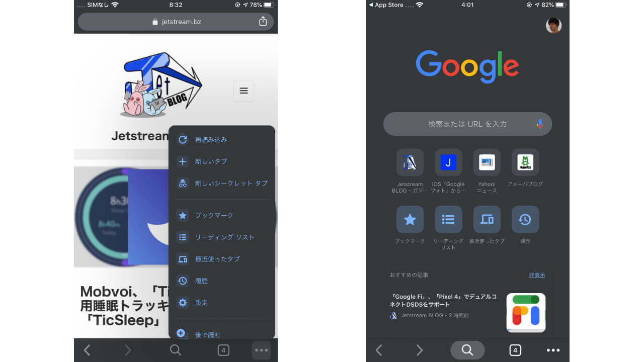 2019 年 10 年 22 日に Google のブザウザサービス「Chrome」の iOS 版アプリが v78 にアップデートされ、ダークモードをサポートしました。