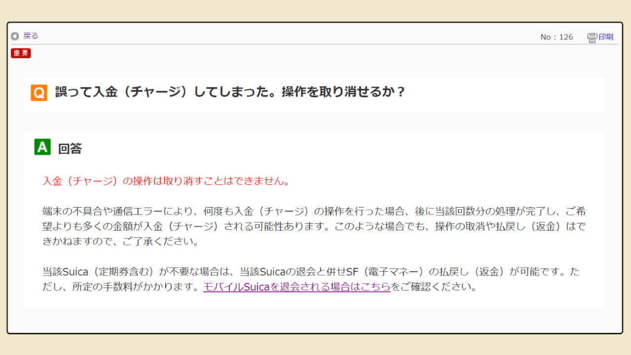 「モバイルSuica」誤ってチャージした場合の取り消しは?