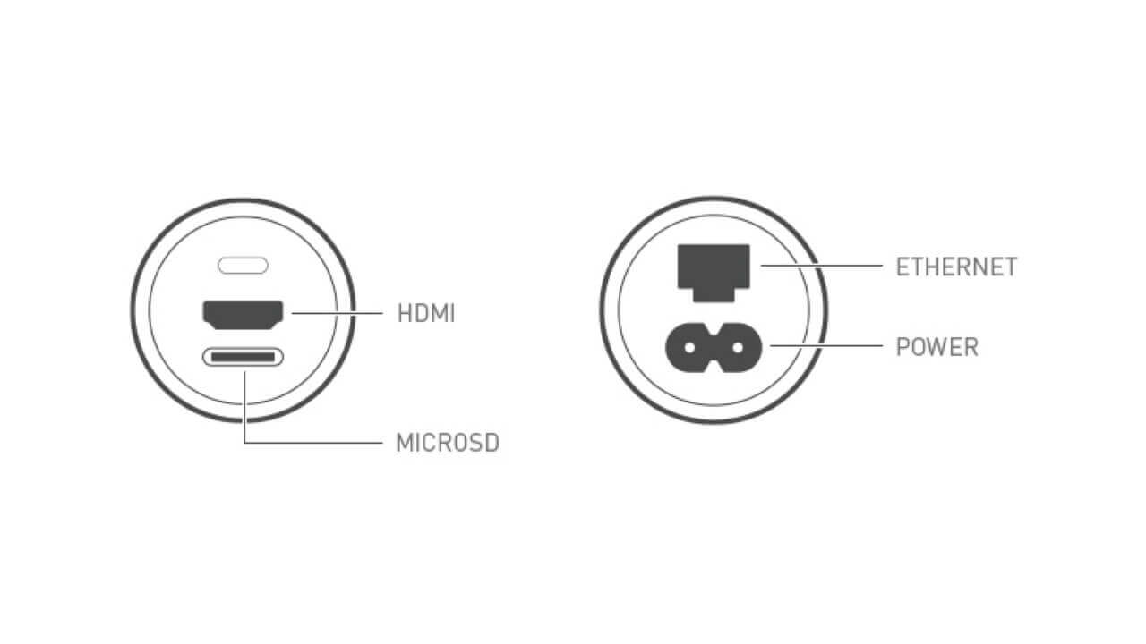 前作まではボックス形状だったのですが、次世代モデルはコンパクトなシリンダー型にデザインを刷新。インターフェースは電源ポートのほか、HDMI ポート(HDMI 2.0b / HDCP 2.2 / CEC)、microSD カードスロット、イーサネットポートのみとシンプルな仕様となっています。