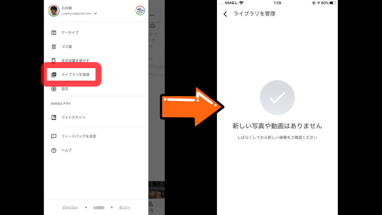 iOS「Google フォト」に[ライブラリを管理]が追加