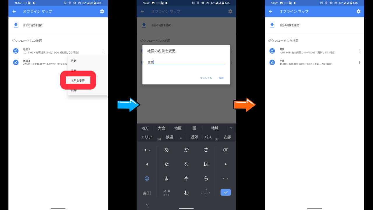- スマートフォン用「Google マップ」アプリでダウンロードしたオフラインマップ名前を変更する方法ご紹介