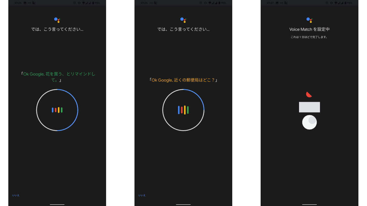 これまでは “OK Google” というだけだったので簡単だったのですが、新たに文章を読んで登録する仕様となり、若干手間は増えました。ただ恐らくその分、“Voice Match” の精度を上げつつ、「Google アシスタント」をよりパーソナルにすることができると予想されます。