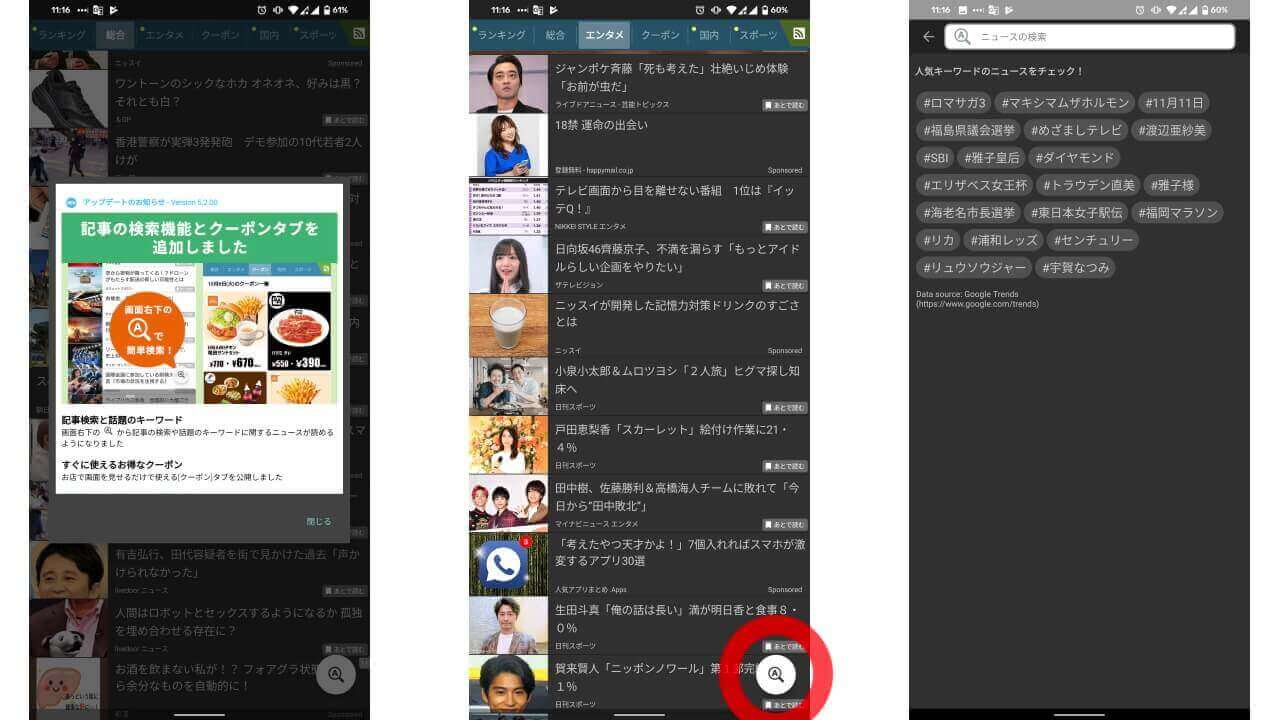 Sony が提供するモバイル向けニュースキュレーションサービス「ニューススイート」が 2019 年 11 月 11 に v5.2 へとアップデートされ、記事検索機能が追加されました。