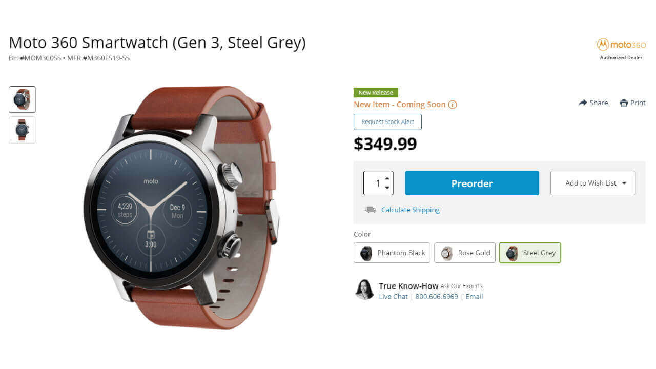B&H では、第 3 世代「Moto 360」の海外出荷に対応しています。つまり直輸入可能です。