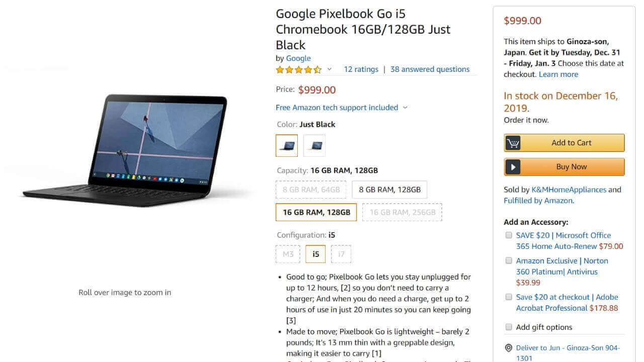 - 「Pixelbook Go」が米 Amazon.com から一部定価で直輸入可能に