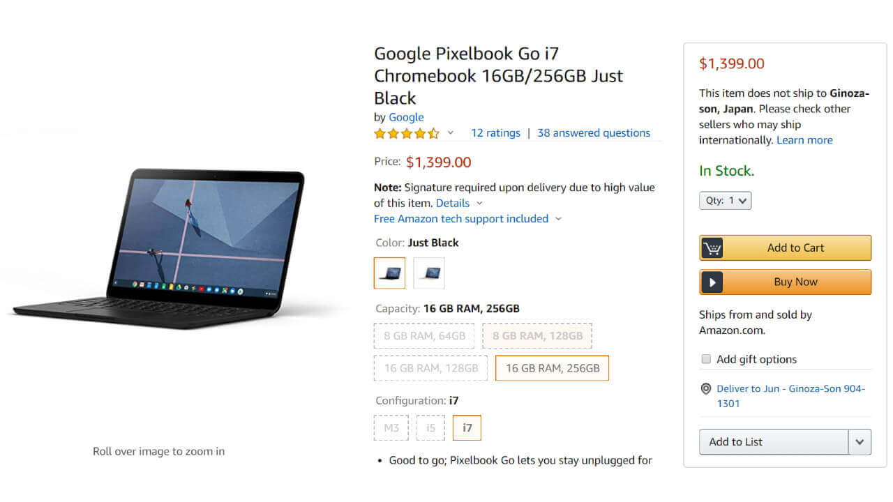 「Pixelbook Go」最上位モデルは、「Pixelbook Go」の中で最後発売となりました。現地の Amazon.com や Google ストアから購入可能です。