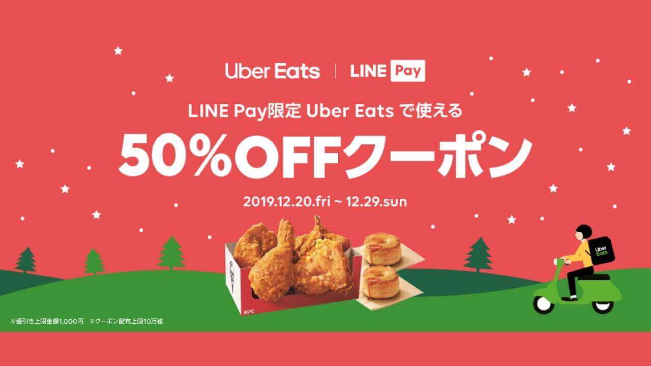 さらに同日より 12 月 29 日まで、1,000 円を上限として「Uber Eats」の注文が 50% 引きとなる「LINE Pay」クーポンも配布開始されています。この「Uber Eats」50% 引きクーポンは、10 万枚限定です。