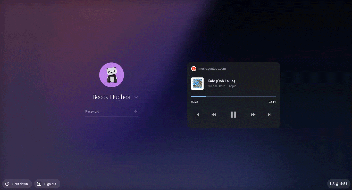 - Chromebook のロック画面でメディア制御が可能に