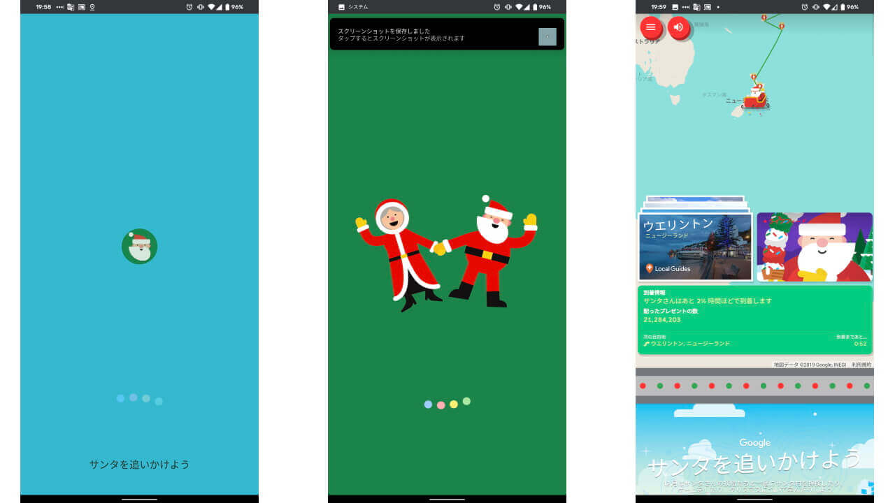 2019 年の Google サンタトラッカーイベントは、「サンタを追いかけよう」として、「サンタトラッカー」サイト内でサンタクロースの現在地を確認することができます。
