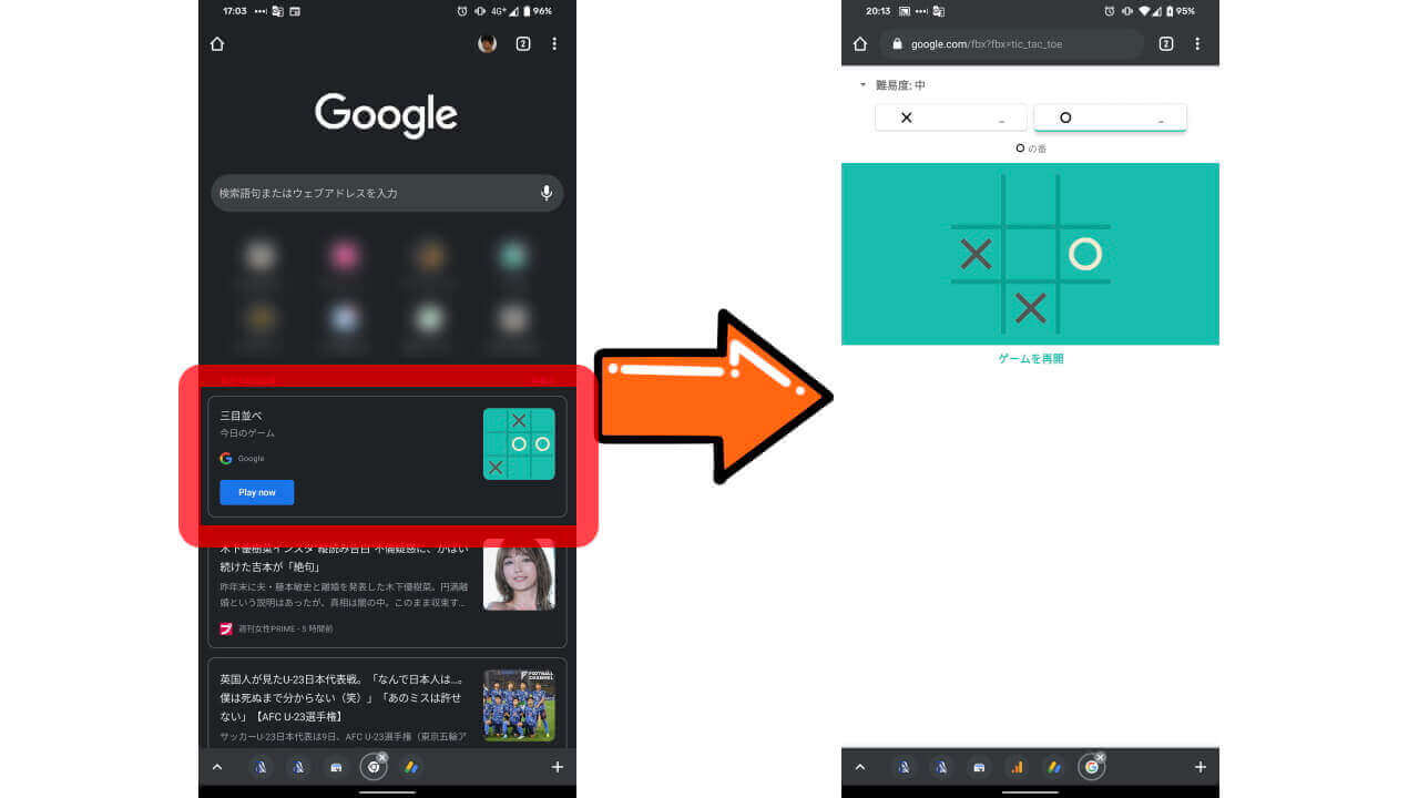 そして 2020 年 1 月上旬、Google ブラウザサービス「Chrome」の Android 版アプリにて、「Google Discover」の枠となる[おすすめ記事]に、Google 提供の新たな[今日のゲーム]カードがトップに登場しました。