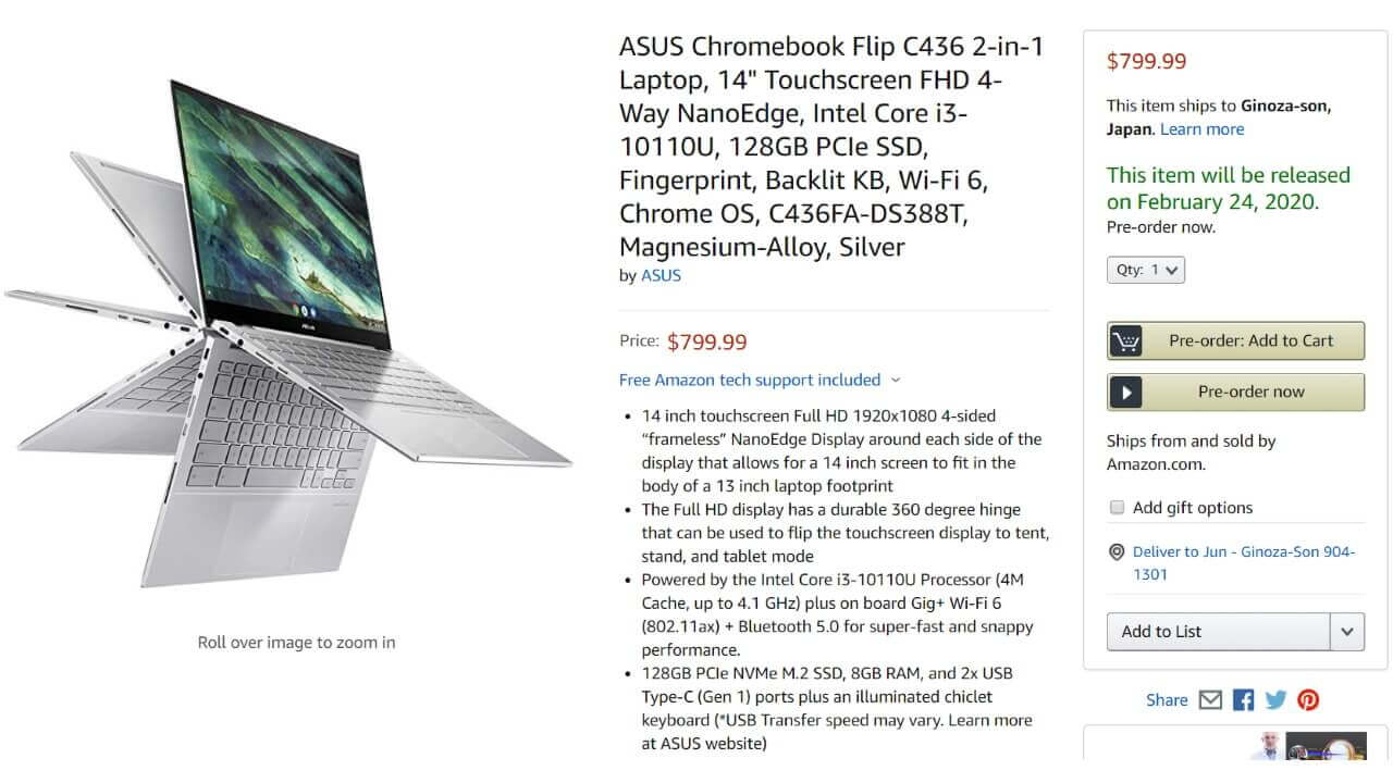 そして今のところ直輸入も可能。「Chromebook Flip C436」を購入予定の方は、Amazon で予約を行っておくと良いかもしれないですね。