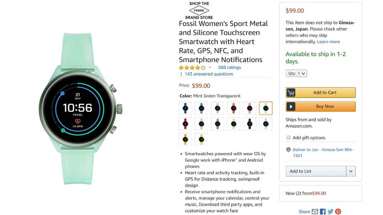 そんな米 Amazon における「Fossil Sport」スケルトンバンドモデル、2 月下旬よりも早く、もう再入荷した模様です。一部在庫切れもありますが、ほとんどのモデルが 1 ~2 日以内の出荷予定となっています。