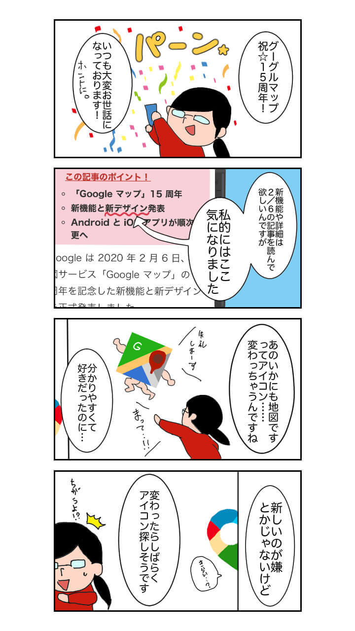 2020 年 2 月 6 日、Google の地図サービス「Google マップ」が 15 周年ということで、新機能と新デザインが正式発表されました。