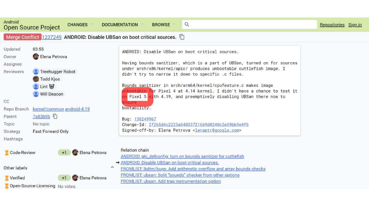 未発表 Google スマートフォン「Pixel 5」の情報が Google 社員によって公開されたのは、「Android Open Source Project(AOSP)」の公式サイトです。内容は単純なもので、“「Pixel 5」が Linux カーネル v4.19 を実行している” というだけのもの。開発の進捗連絡のような内容です。