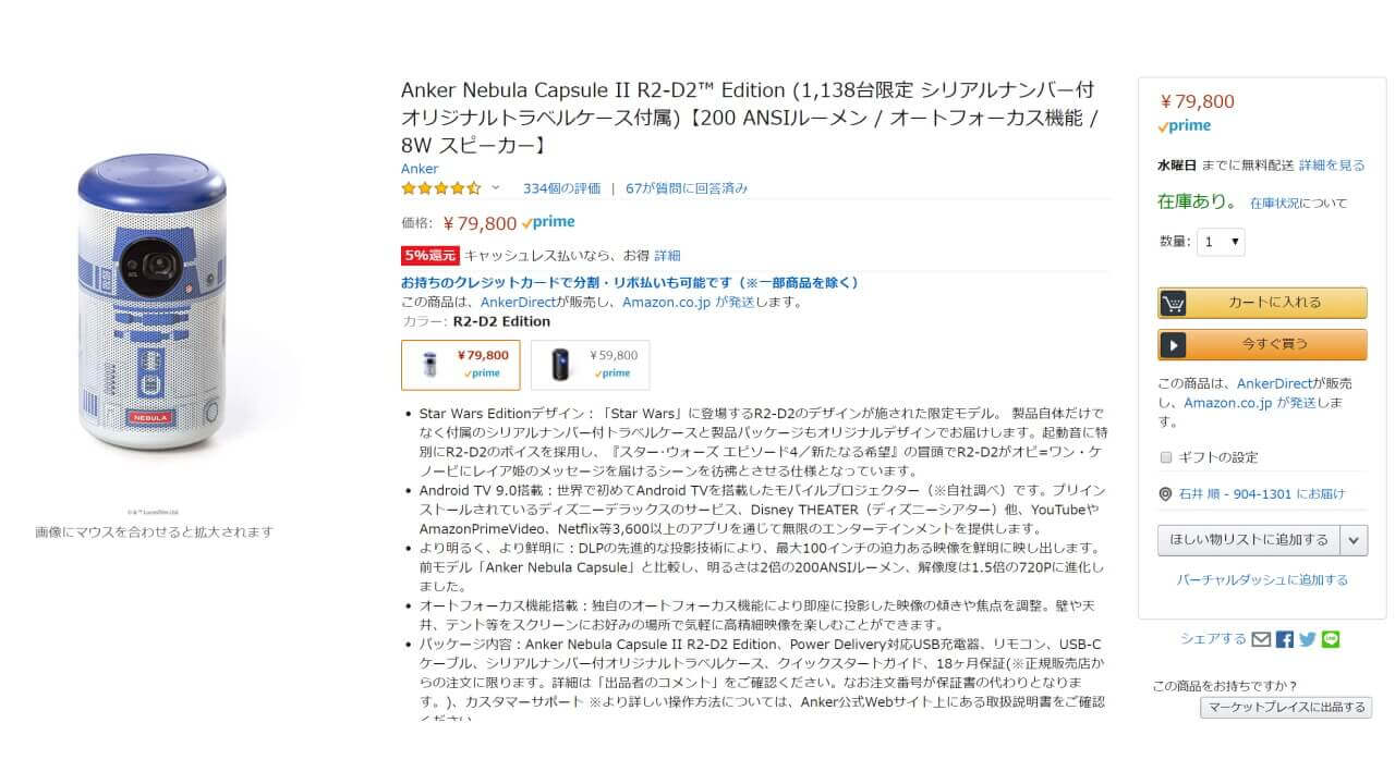 「Nebula Capsule ll R2-D2 Edition」は当初、Anker 公式オンラインストアのみでの販売でした。つまり、Anker 公式では 1,138 個がさばけなかったんでしょうね。