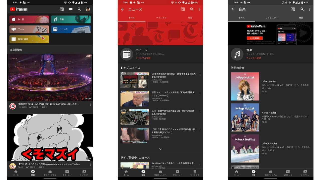 - Android と iOS 版「YouTube」アプリの[急上昇]タブが新たな[探索]タブに