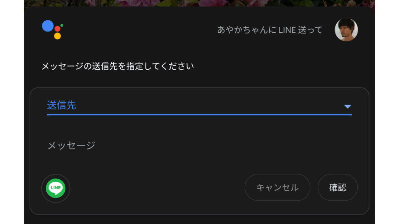 使い方は簡単で、例えば “OK Google、○○に LINE 送って” と「Google アシスタント」に指示することでテキスト受付モードとなるので、改めて送信するメッセージを話す流れです。