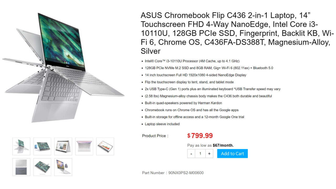 ASUS が 2019 年 1 月 6 日に CES 2020 にて発表した、360 度回転するフリップ型 Chromebook の新型「Chromebook Flip C436」が、米国の ASUS 公式サイト「ASUS ストア」で(米国時間)3 月 31 日に突如発売されました。