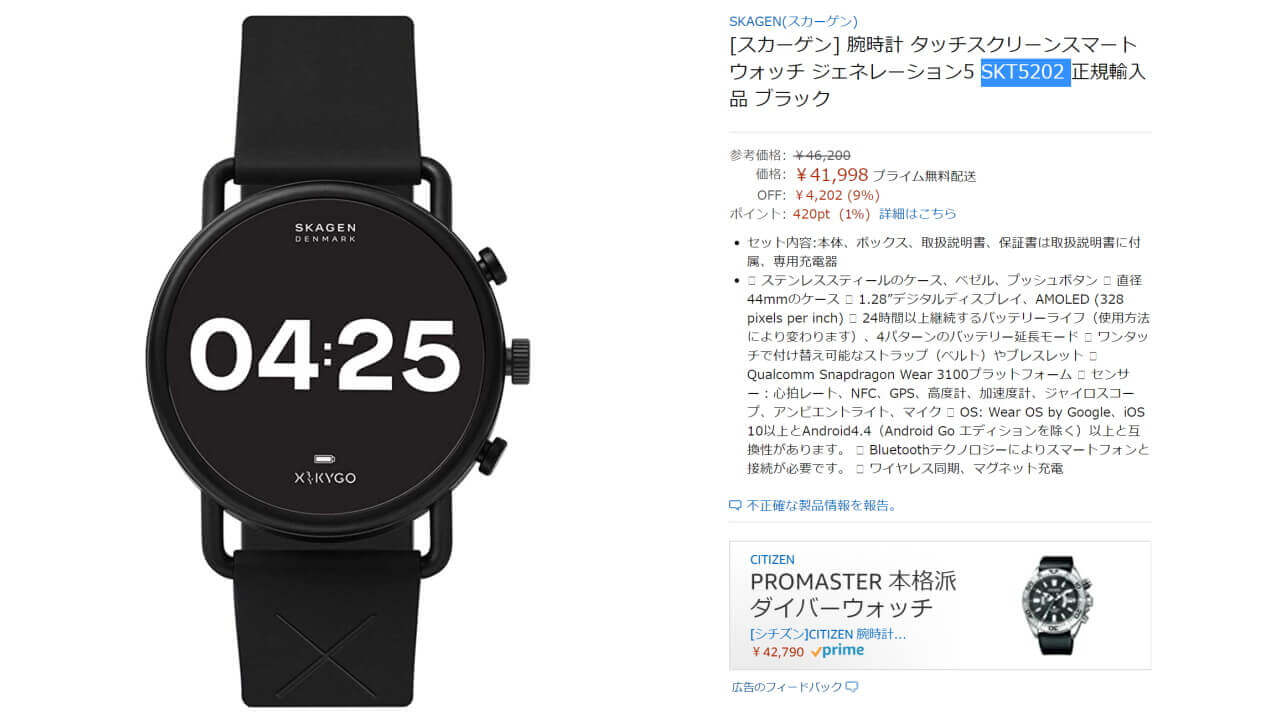 「SKAGEN FALSTER 3」コラボモデル型番「SKT5202」の価格は既存モデルと同じく税込み 46,200 円です。また Amazon においても本体価格は 46,200 円となっています。