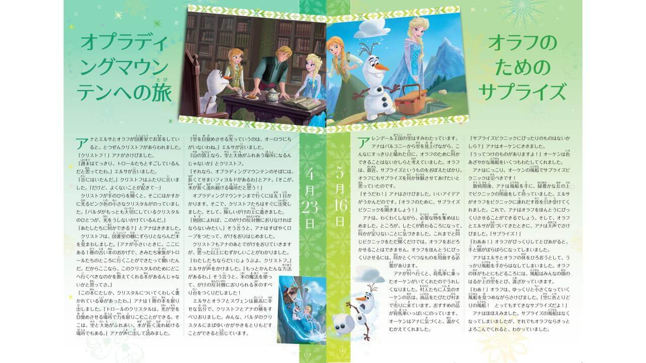 今回の「365 日毎日アナと雪の女王」は、4 月 22 日から 5 月 21 日までの 1 か月限定です。ディズニーゴールド絵本「365 日毎日アナと雪の女王 1 月 ~ 6 月のおはなし」と一緒に読むことで、より楽しむことができます。