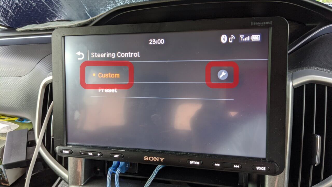 [Sreering Control]設定で[Custom(カスタム)]を選択し、さらに右横の[🔧(レンチ)]ボタンをタッチします。