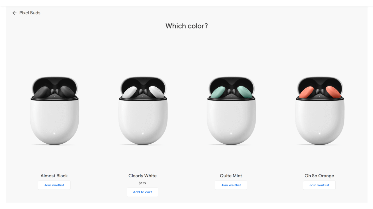 第 2 世代「Pixel Buds」は “Clearly White” “Oh So Orange” “Quite Mint” “Almost Black” の 4 色展開で、米国価格は $179.00 です。日本投入も発表されています。